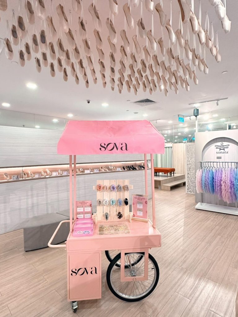 From 20 February to 20 March, SOVA will have a pop up at Sonata Dancewear’s store at Funan to customise your SOVA scrunchie with ballet-themed charms.